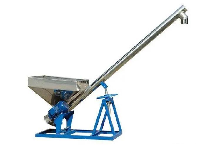 倾斜螺旋提升机是靠电机产生动力,带动摆线减速机传动到螺旋器,是一种利用螺旋旋转使物料向前挤压,同时使物料产生向前的推动,螺旋上料机从进料口进料经螺旋器强制性使物料输送到出料口