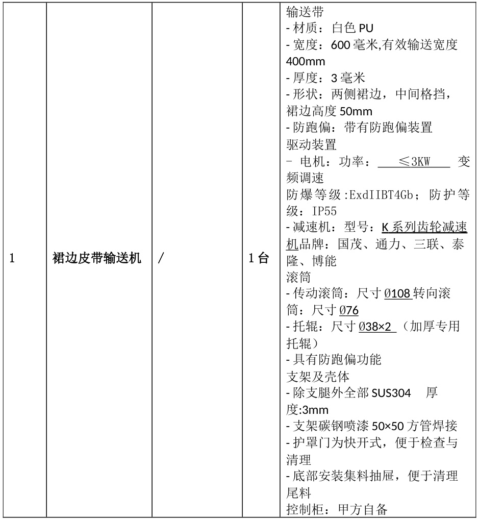 安全防护:标配防跑偏、防撕裂、拉绳急停装置,溜槽倾角≥60°防堵料